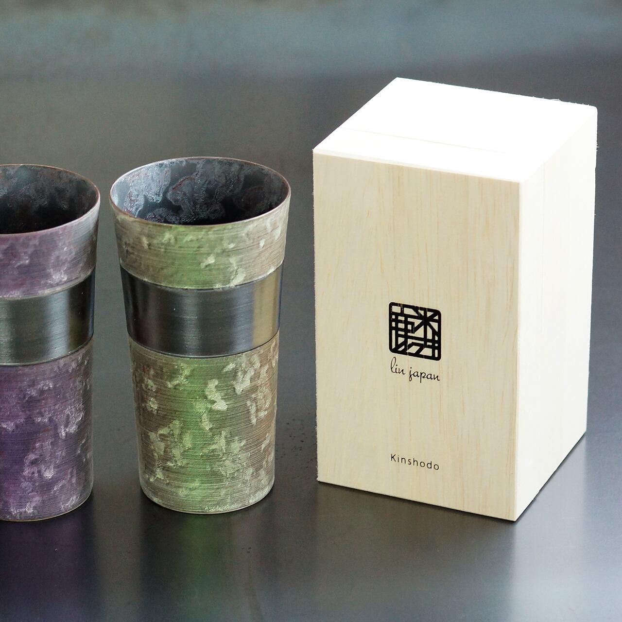 見る角度によって色味が変わり、パールの光が美しい色を発し、非日常の空間と癒しをもたらします。目線で変わる光と影のコントラストを、ぜひ手に取って楽しんでいただきたいタンブラーです。手作業のため、表面の凹凸や色合い、筆の刷毛あとなど、一つ一つ異なります。予めご了承くださいませ。